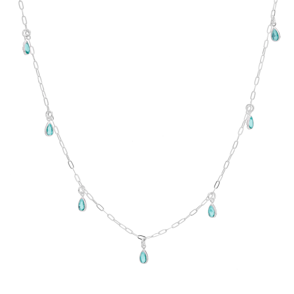 R$ 100,90 5x de R$ 20,18 s/ juros R$ 95,86 no PIXColar de prata 925 zircônias gotas penduradas turmalina 45 cm + extensor