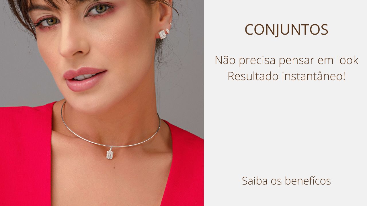 E como a lista de vantagens dos conjuntos não acaba, temos mais uma! A versatilidade. De uma maneira geral, os conjuntos são feitos com peças bem delicadas, o que permite que você crie novas combinações, como falamos no tópico anterior. Cansou de repetir o mesmo conjunto? Combina dois pingentes, com correntes de tamanhos diferentes. Ou se tiver mais de um furo na orelha, abuse da criatividade na hora de criar um mix de brincos. São peças práticas, lindas e, como falamos: versáteis. Não tenha medo de ousar nos dias que cansar do modo padrão do conjunto.