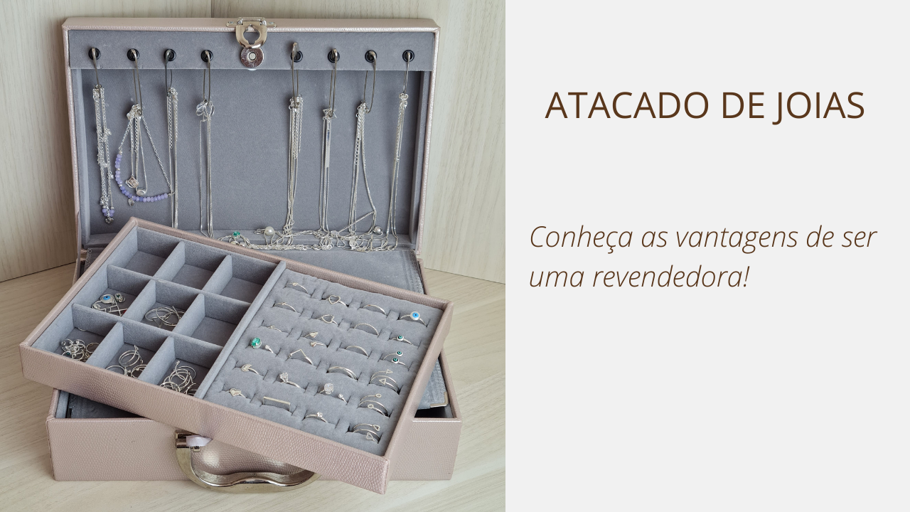 Nós temos uma grande variedade de joias em prata 925 e banhadas a ouro. Além disso, sempre trazemos novas coleções, visando agradar as nossas clientes dos mais variados estilos. Então, garantimos que não vão faltar opções para você ofertar para as suas clientes.