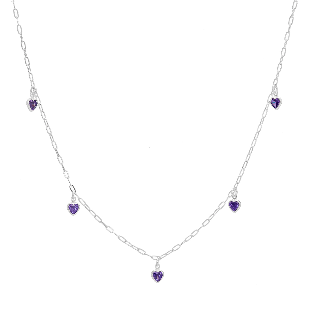 R$ 69,90 5x de R$ 13,98 s/ juros R$ 66,41 no PIXColar de prata 925 corações pendurados zircônias ametista 45 cm + extensor