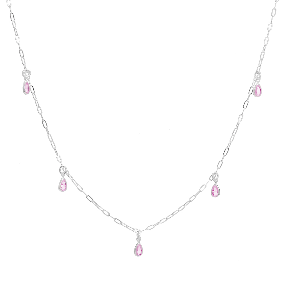 R$ 127,70 5x de R$ 25,54 s/ juros R$ 121,32 no PIXColar de prata 925 zircônias gotas penduradas rosa 45 cm + extensor