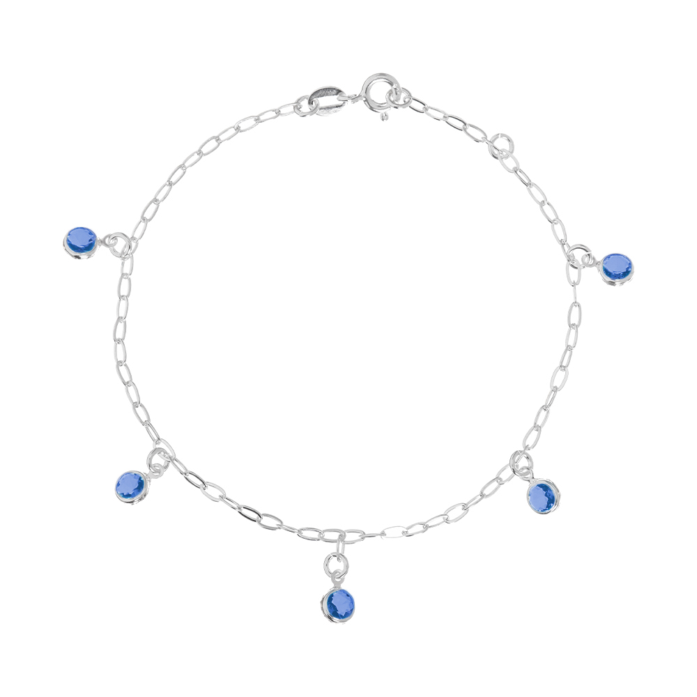 R$ 73,80 5x de R$ 14,76 s/ juros R$ 70,11 no PIXPulseira de prata 925 zircônias redondas penduradas azul escuro