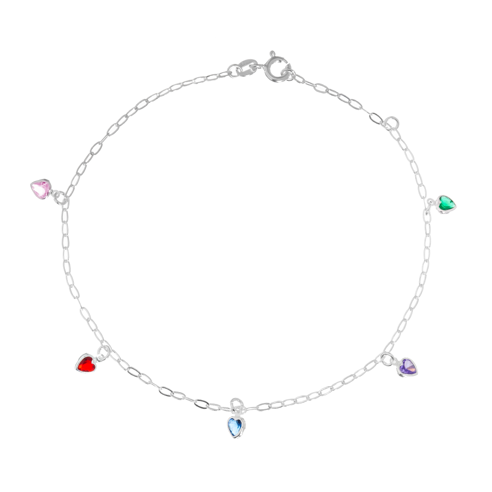 R$ 83,90 – R$ 118,50Price range: R$ 83,90 through R$ 118,50 A partir de 5x de R$ 16,78 s/ juros R$ 79,71 no PIXTornozeleira de prata 925 pingentes zircônias corações coloridos