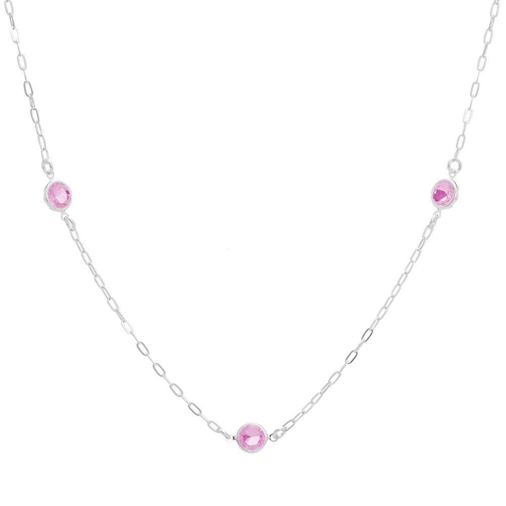 R$ 111,90 5x de R$ 22,38 s/ juros R$ 106,31 no PIXColar de prata 925 tiffany zircônias rosa 45 cm + extensor