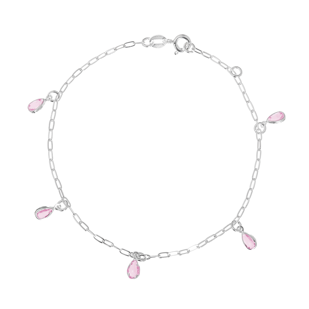 R$ 60,90 5x de R$ 12,18 s/ juros R$ 57,86 no PIXPulseira de prata 925 zircônias gotas penduradas rosa