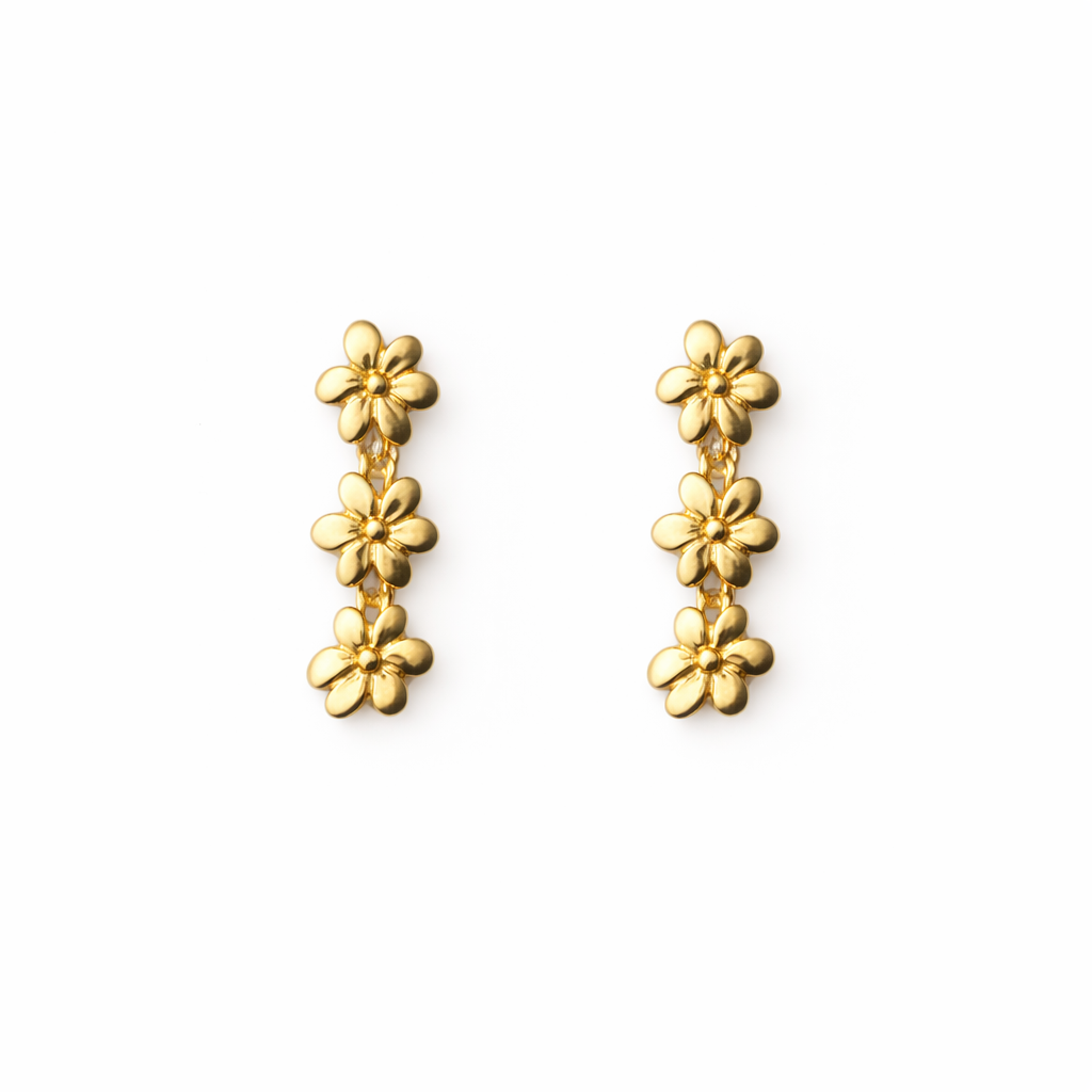 Brinco mini ear cuff flores banhado a ouro 18k