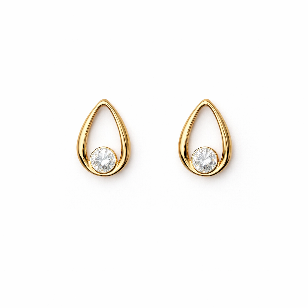 Brinco gota orgânica vazada zircônia banhado a ouro 18k