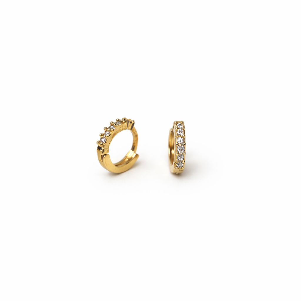 Brinco argolinha mini 6 zircônias banhado a ouro 18k