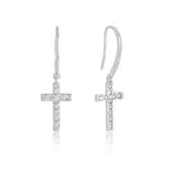 Brinco de prata 925 gancho com pingente cruz cravejado 3,0 cm