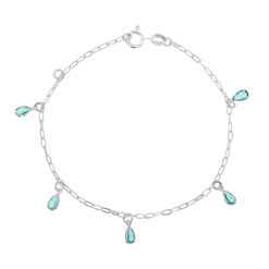 Pulseira de prata 925 zircônias gotas penduradas azul turmalina