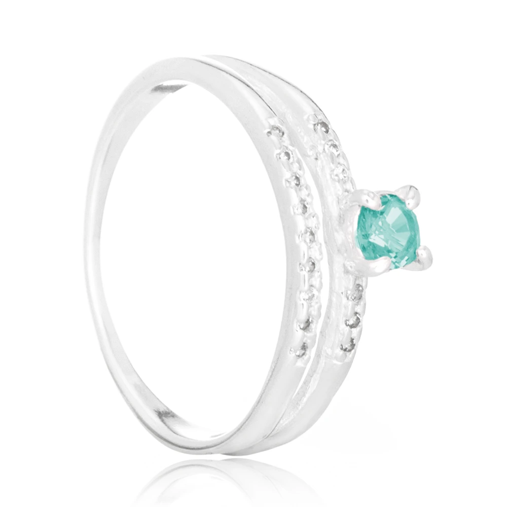 Anel de prata 925 aro duplo cravejado com zircônia central turmalina