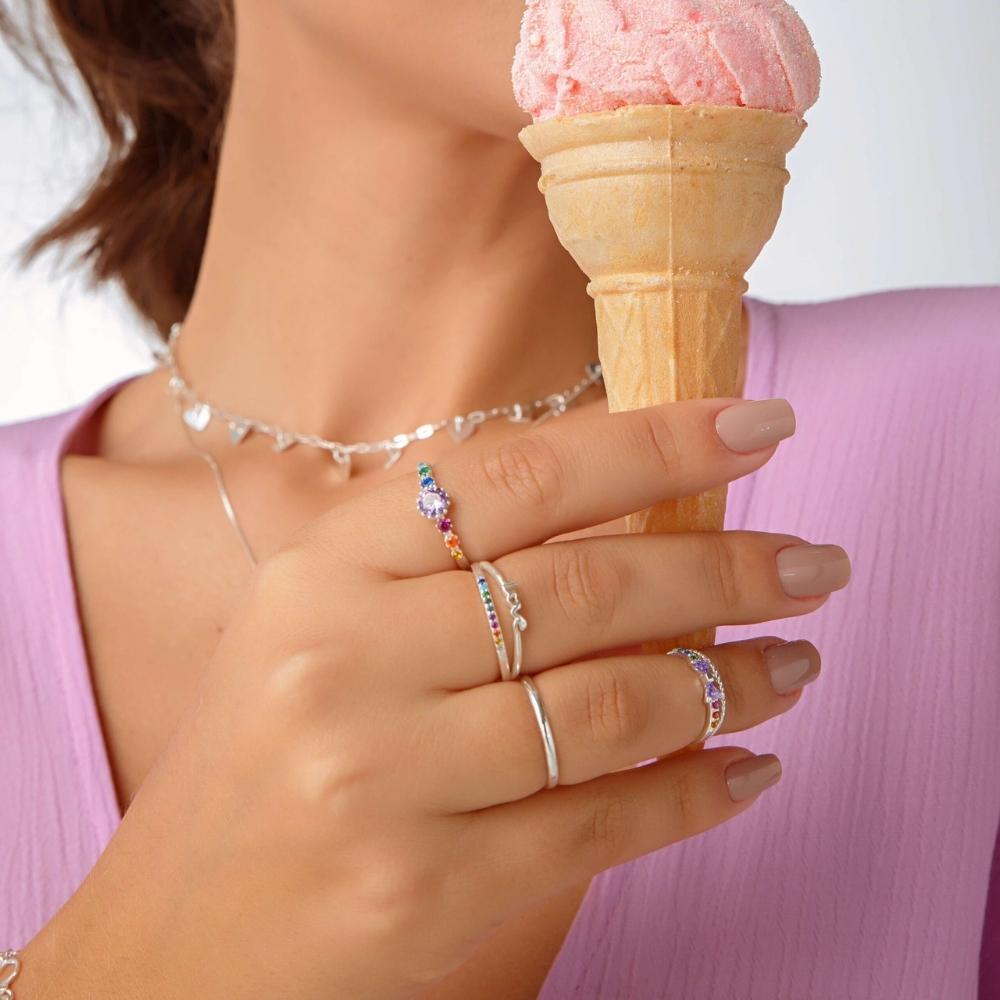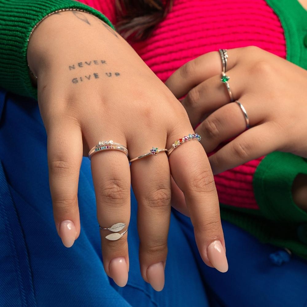 O anel de prata aro duplo love colorido, sem dúvidas é o acessório ideal para embelezar suas mãos e trazer muito charme para qualquer look.