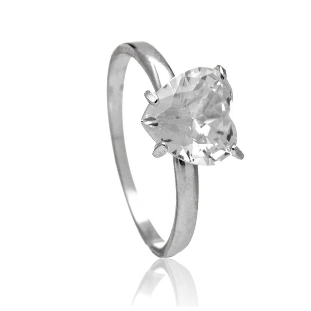 Anel de prata 925 solitário zircônia coração