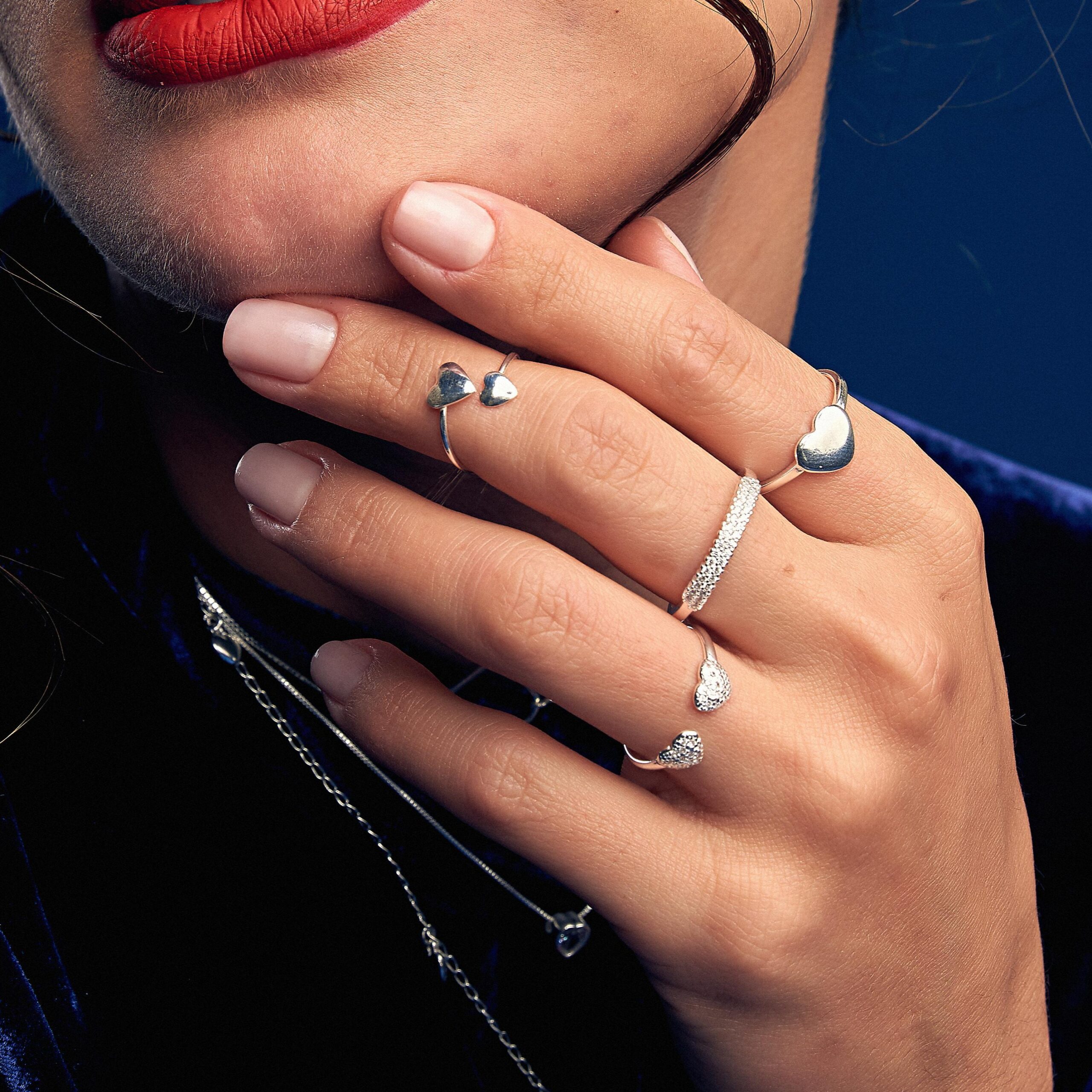 Com seu estilo elegante e romântico, o Anel de Prata Aberto Corações Cravejados é uma escolha perfeita para expressar seus sentimentos ou para presentear alguém especial.