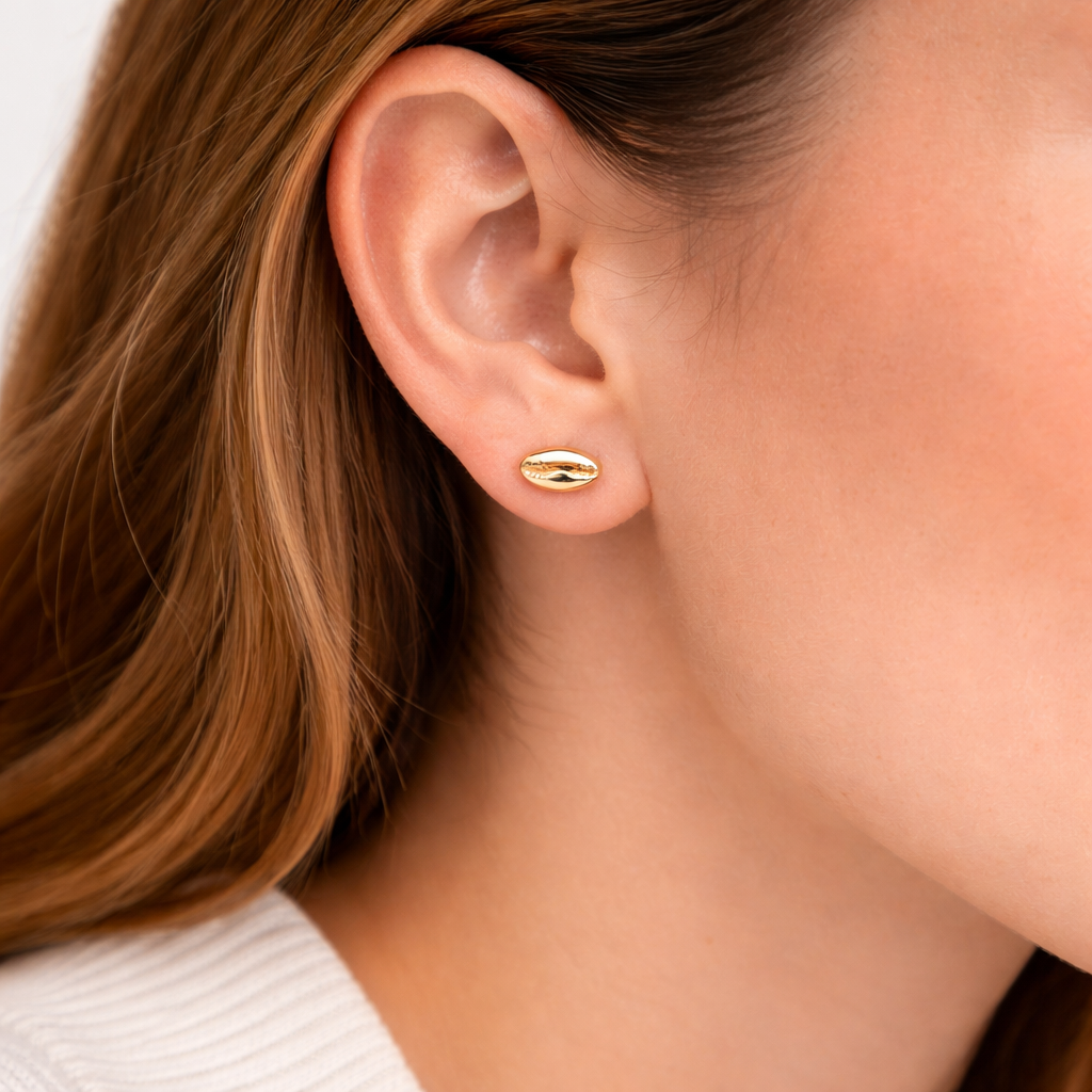 Nossos brincos são produzidos com uma liga de metais, recebendo acabamento premium em Ouro 18k, através do processo de galvanização, que garante um acabamento uniforme e um brilho elegante na peça.