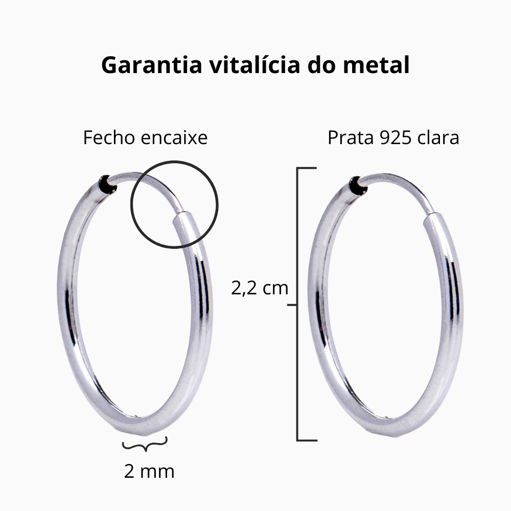 Brinco de prata 925 argola fio redondo liso 2,2 cm