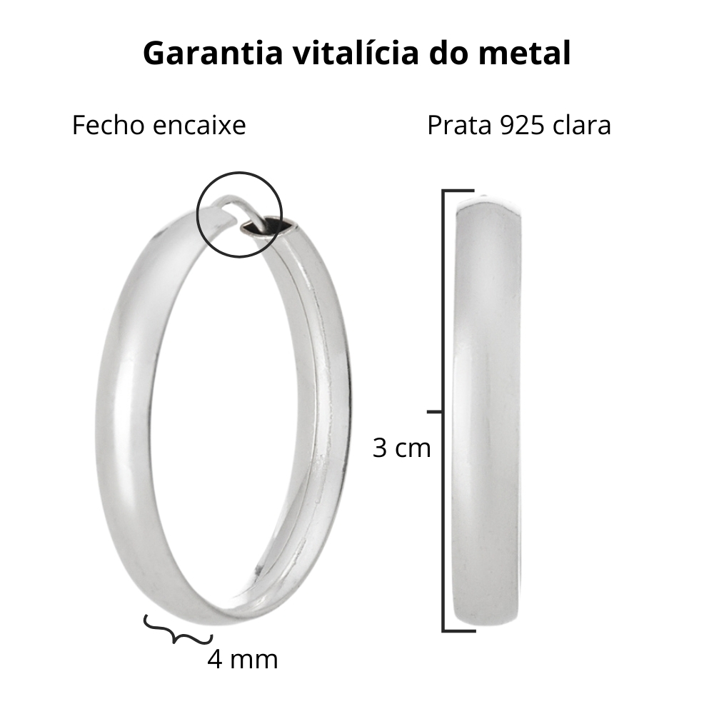 Brinco de prata 925 argola grossa fio meia cana lisa 3 cm
