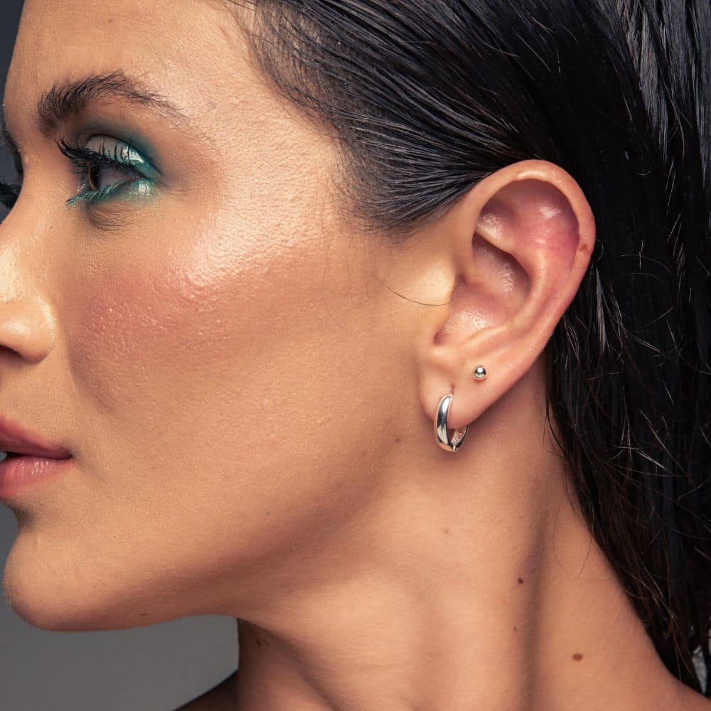 Use no segundo furo com brincos grandes para criar uma aparência descolada ou no primeiro furo para uma combinação natural e elegante.