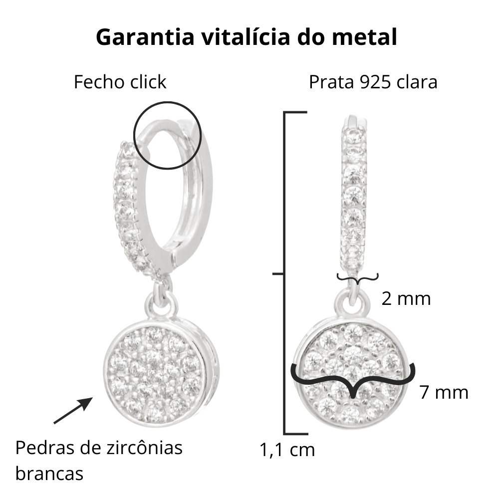 Nossos brincos são produzidos com a Prata 925, que é uma liga composta por 92,5% de prata pura e 7,5% de outros metais, também conhecida como Prata Legítima, essa composição torna a joia mais resistente ao desgaste do dia a dia.