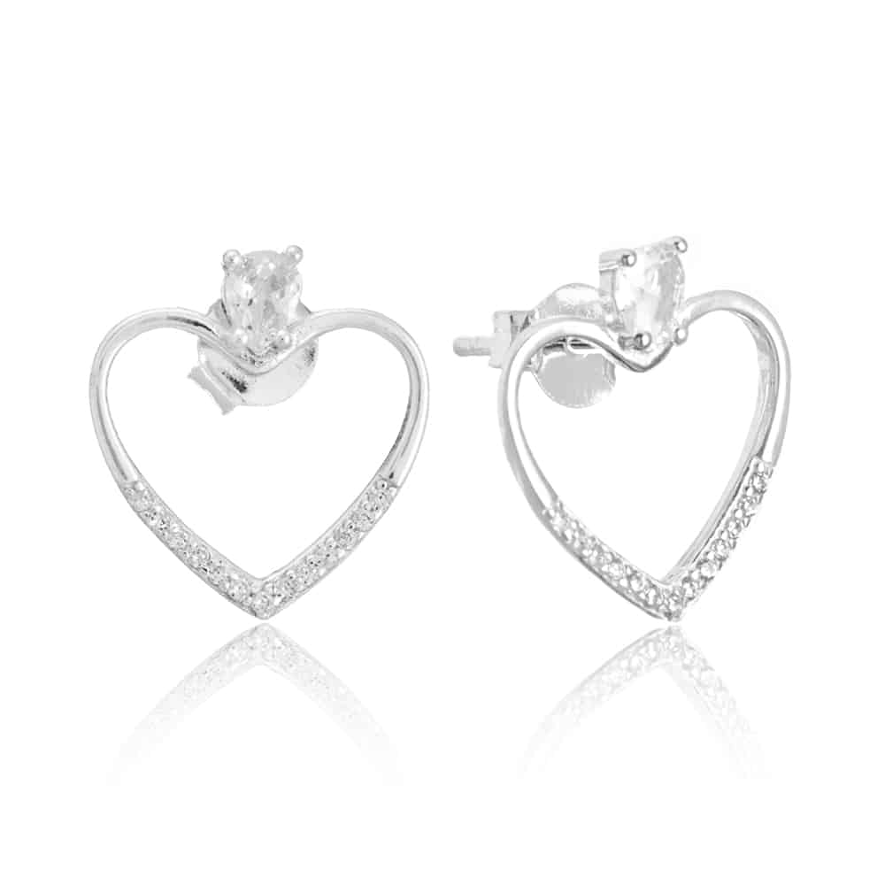 Brinco de prata 925 coração vazado cravejado e zircônia gota 1,5 cm