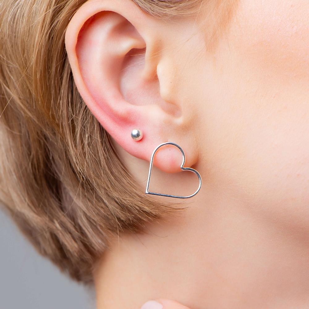 Combine o brinco de coração vazado médio com outros brincos de coração para composições harmônicas e elegantes!