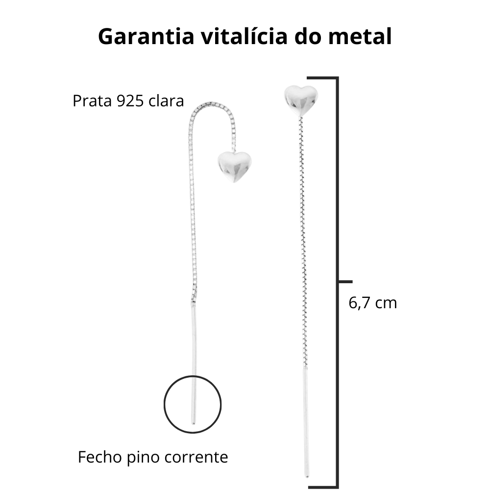O brinco de prata corrente com coração liso 9 cm possui um design diferenciado e sem dúvidas, é muito estiloso.