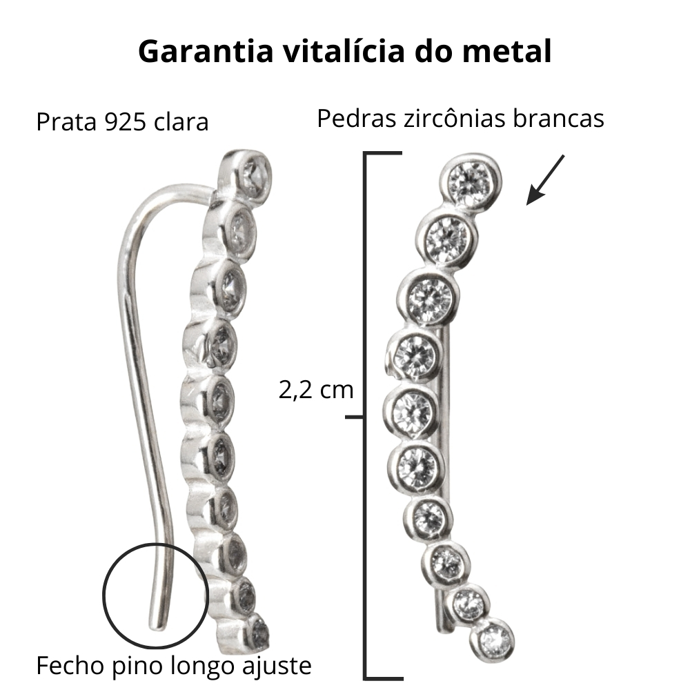 O brinco de prata ear cuff bolinhas com zircônias, inegavelmente é uma joia delicada e muito autêntica para conquistar um visual moderno e único.