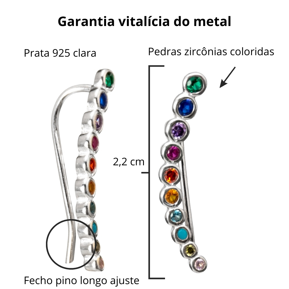 O brinco ear cuff bolinhas zircônias coloridas, inegavelmente é uma joia delicada e muito autêntica para conquistar um visual moderno e único.