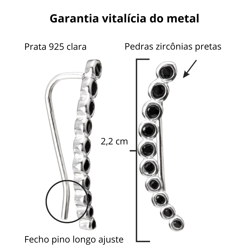 Brinco de prata 925 ear cuff bolinhas com zircônias preta 2,2 cm