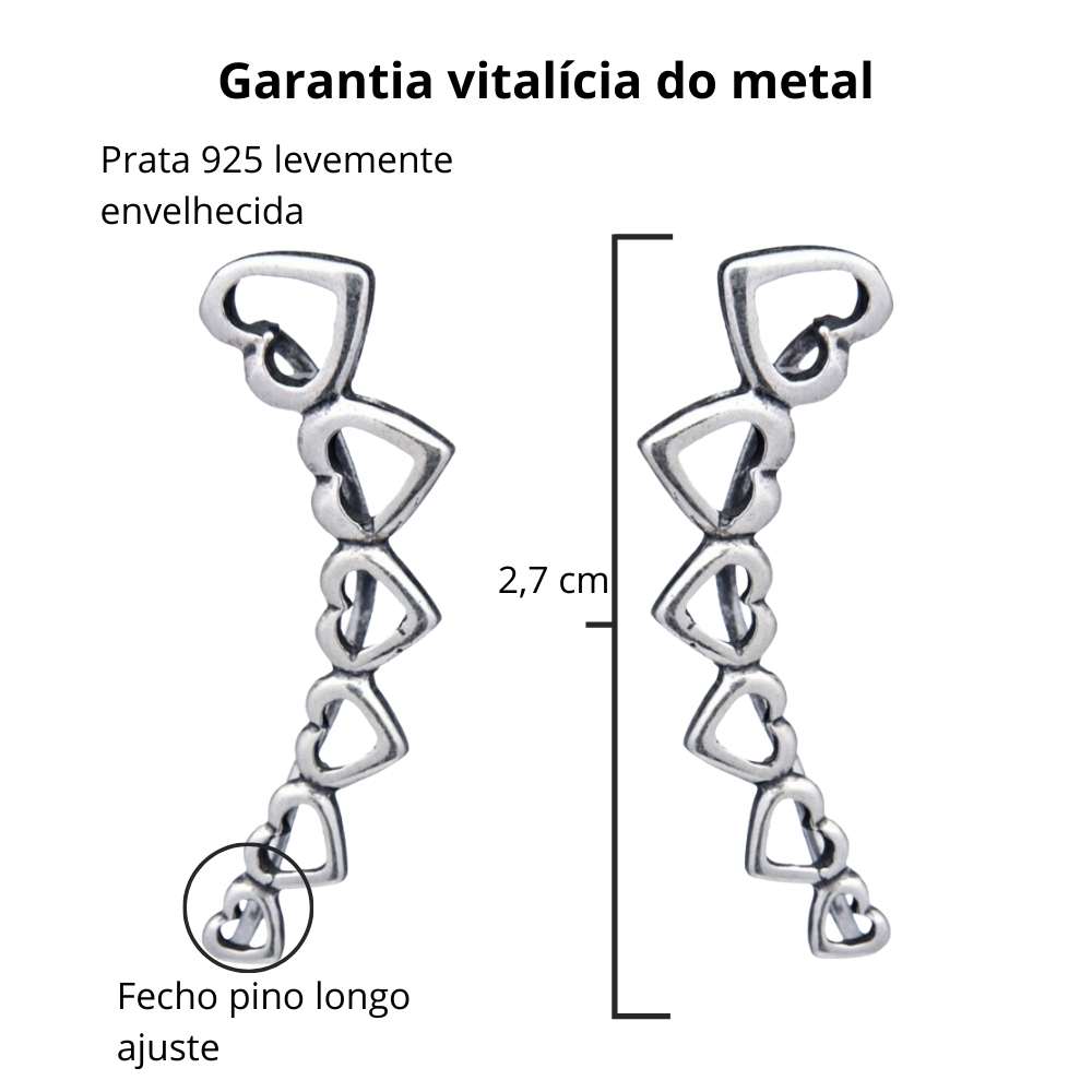 O brinco de prata ear cuff corações vazados em Prata, inegavelmente é uma joia delicada e muito autêntica para conquistar um visual moderno e único.