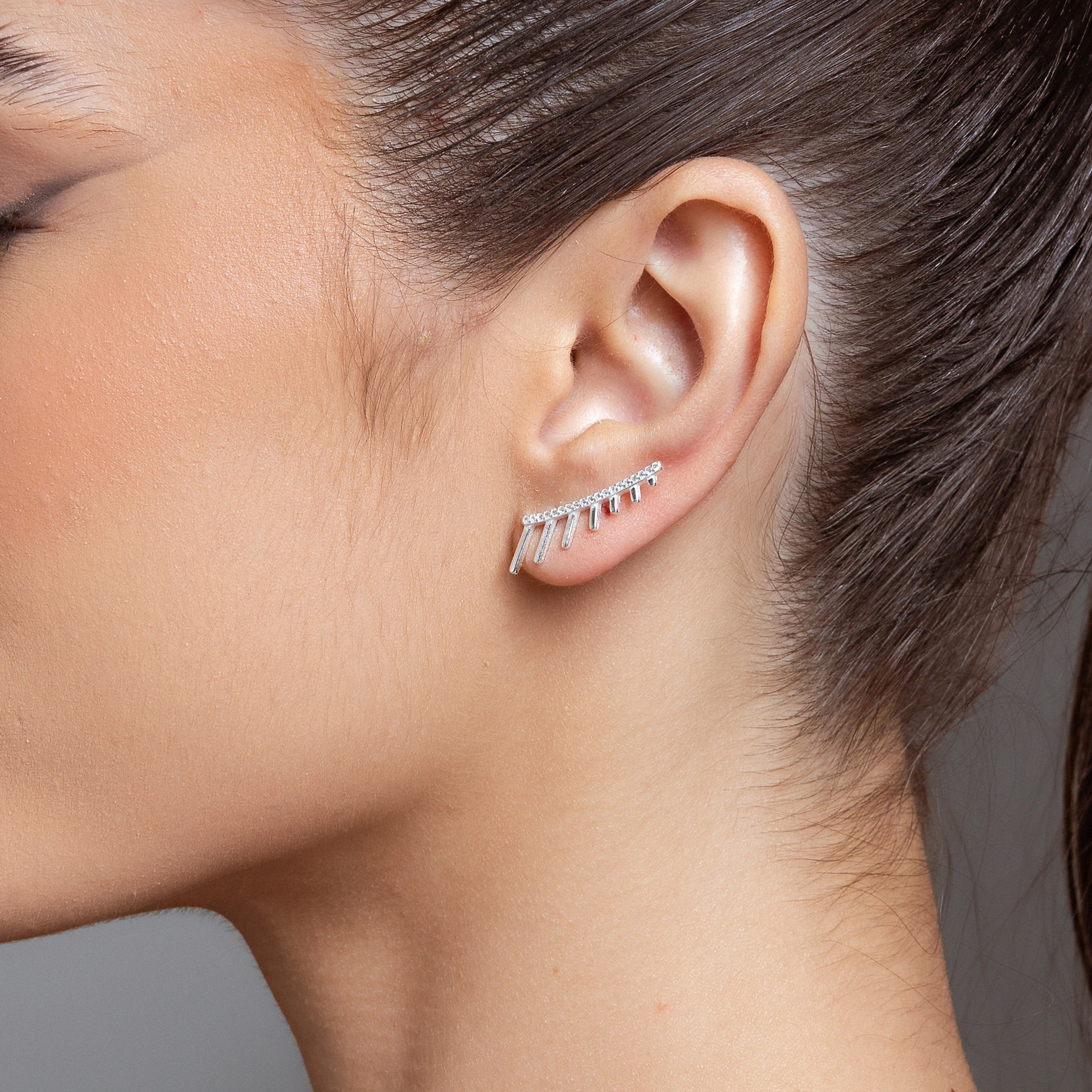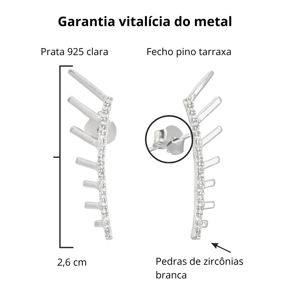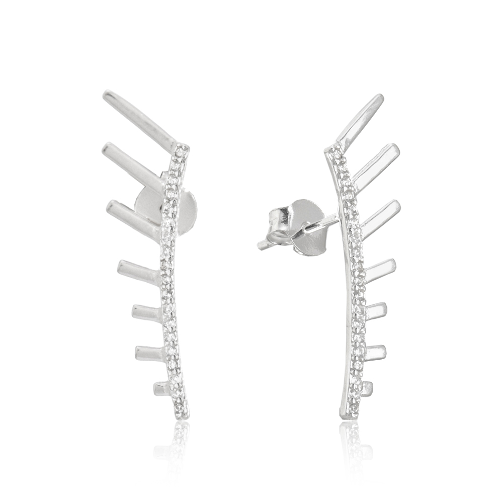 Brinco de prata 925 riscos crescentes cravejado com zircônias brancas 2,6 cm