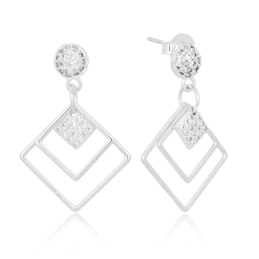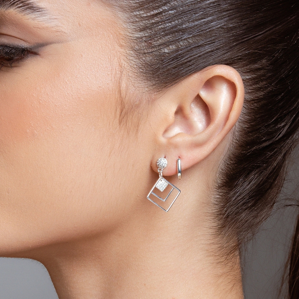 O Brinco de Prata Geométrico Cravejado é um acessório coringa, perfeito para os looks diários.