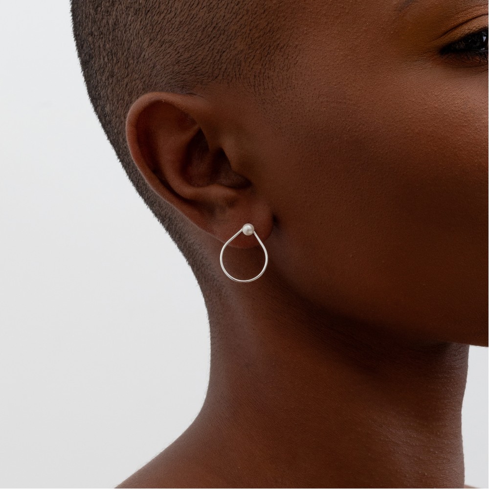 Brinco de prata 925 gota vazada com pérola
