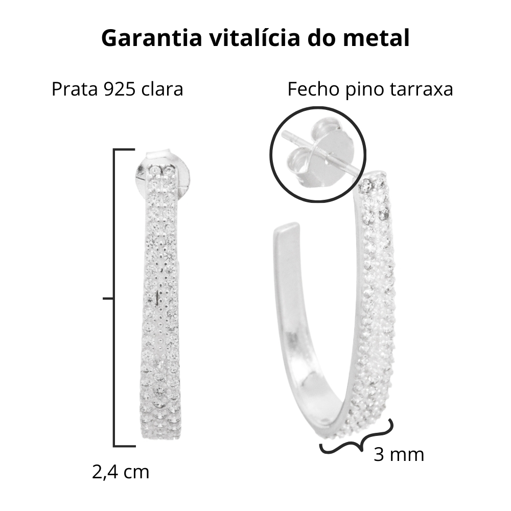 Nossos brincos são produzidos com a Prata 925, que é uma liga composta por 92,5% de prata pura e 7,5% de outros metais, também conhecida como Prata Legítima, essa composição torna a joia mais resistente ao desgaste do dia a dia.