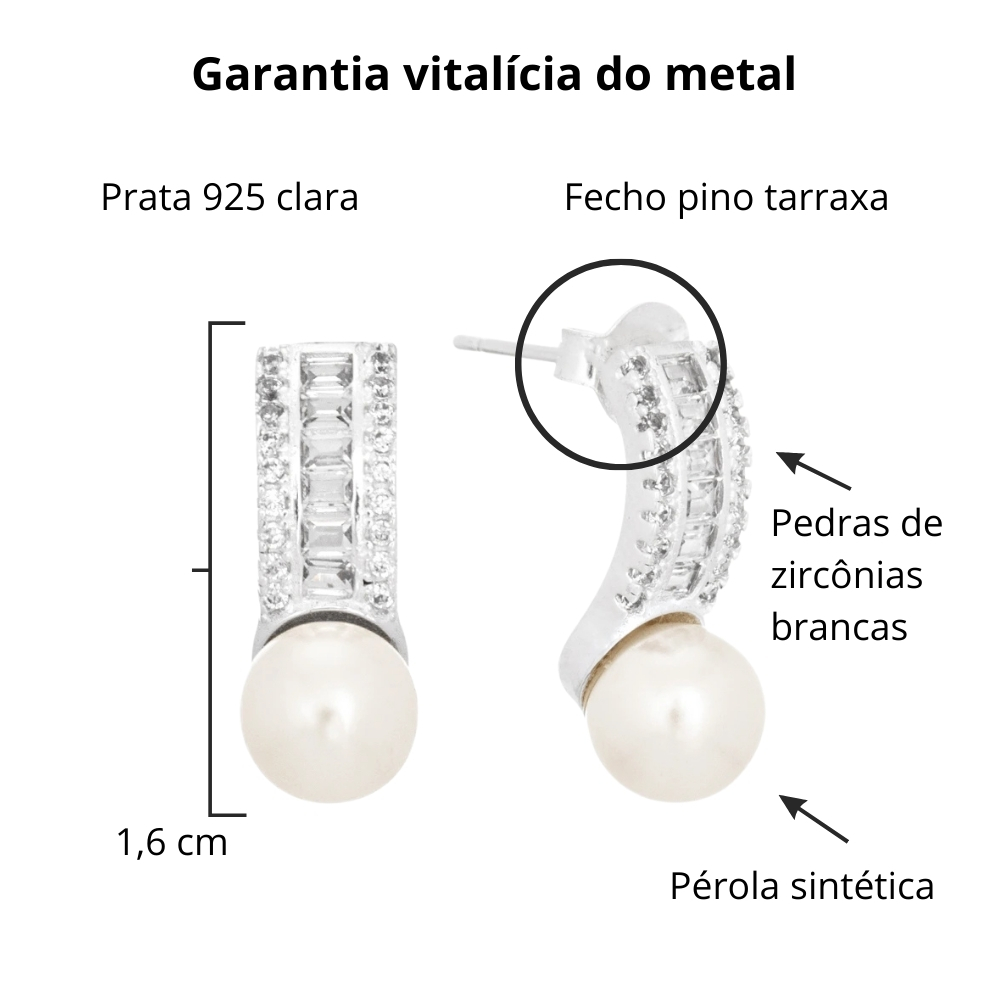 Nossos brincos são produzidos com a Prata 925, que é uma liga composta por 92,5% de prata pura e 7,5% de outros metais, também conhecida como Prata Legítima, essa composição torna a joia mais resistente ao desgaste do dia a dia.