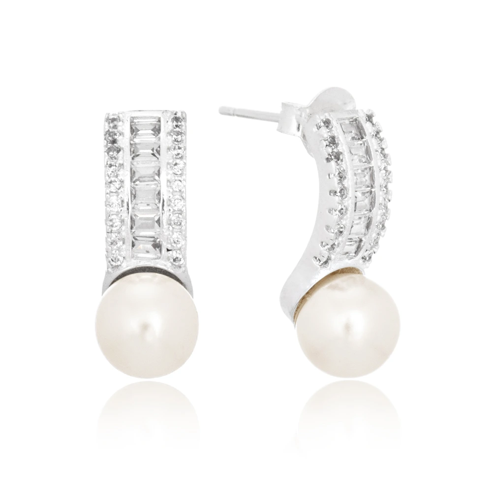 O Brinco de Prata Palito Curvado Cravejado com Pérola é a joia ideal para ocasiões especiais. Com um fio palito cravejado de zircônias, ele exala sofisticação.