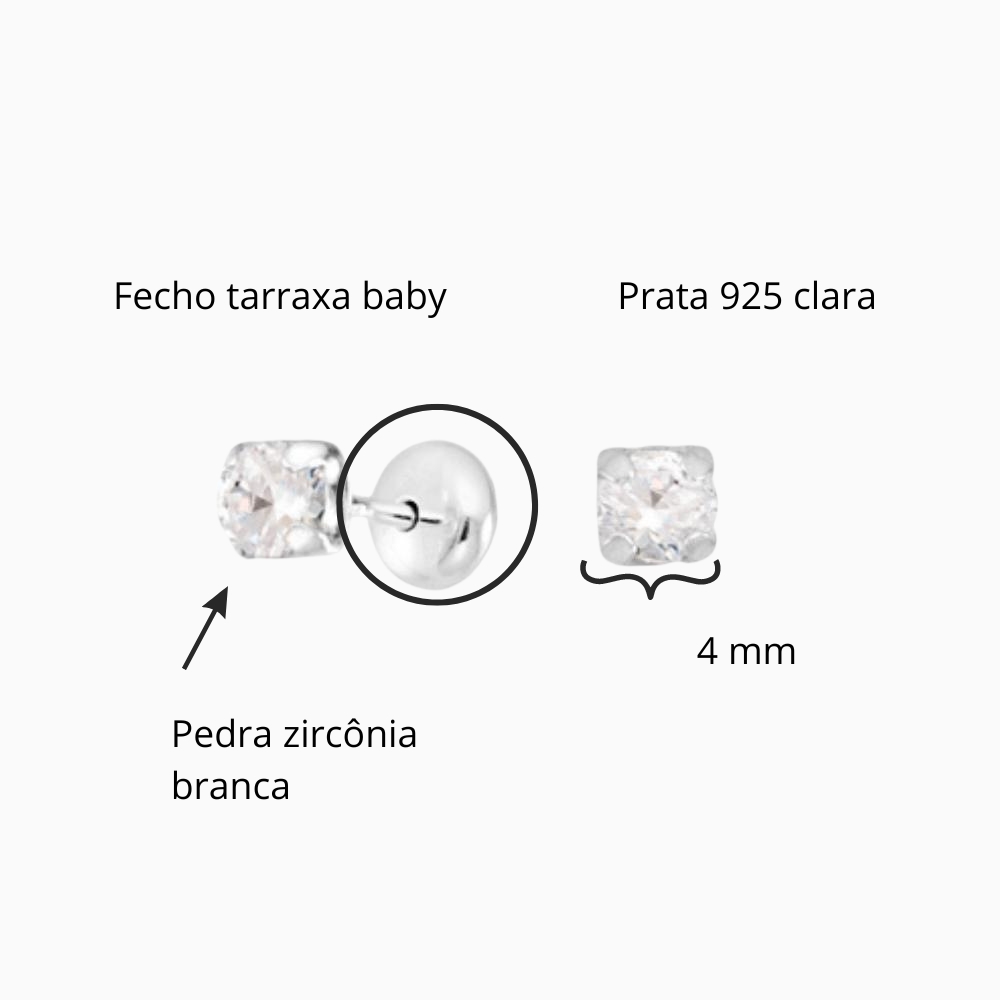 O diferencial do brinco de prata tarraxa baby com zircônia branca 4 mm é a sua tarraxa arredondada.