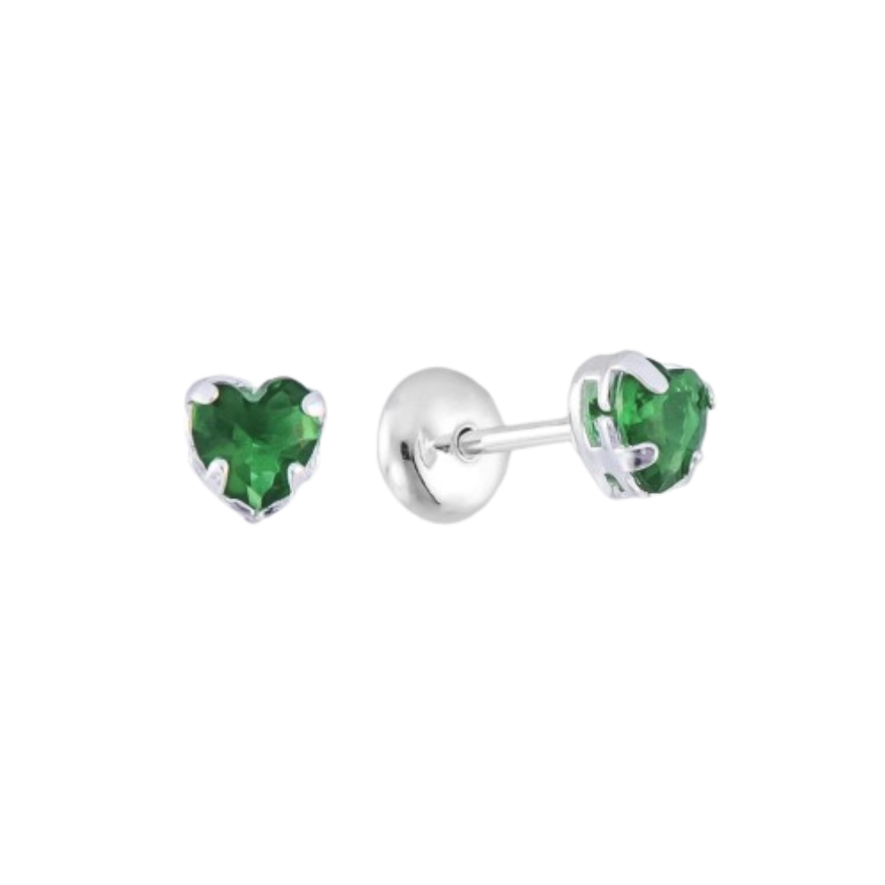 Brinco de prata 925 tarraxa baby zircônia coração esmeralda 4mm