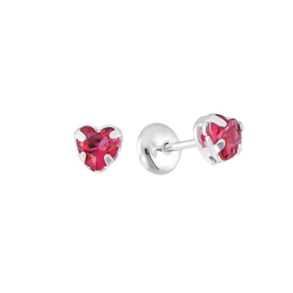 Brinco de prata 925 tarraxa baby zircônia coração turmalina rosa 4mm