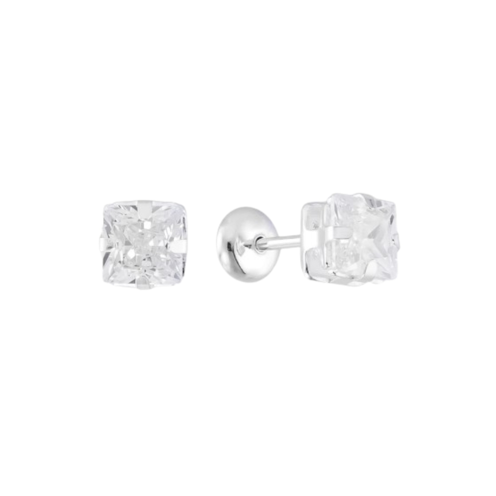 Brinco de prata 925 tarraxa baby zircônia quadrada cristal 5mm