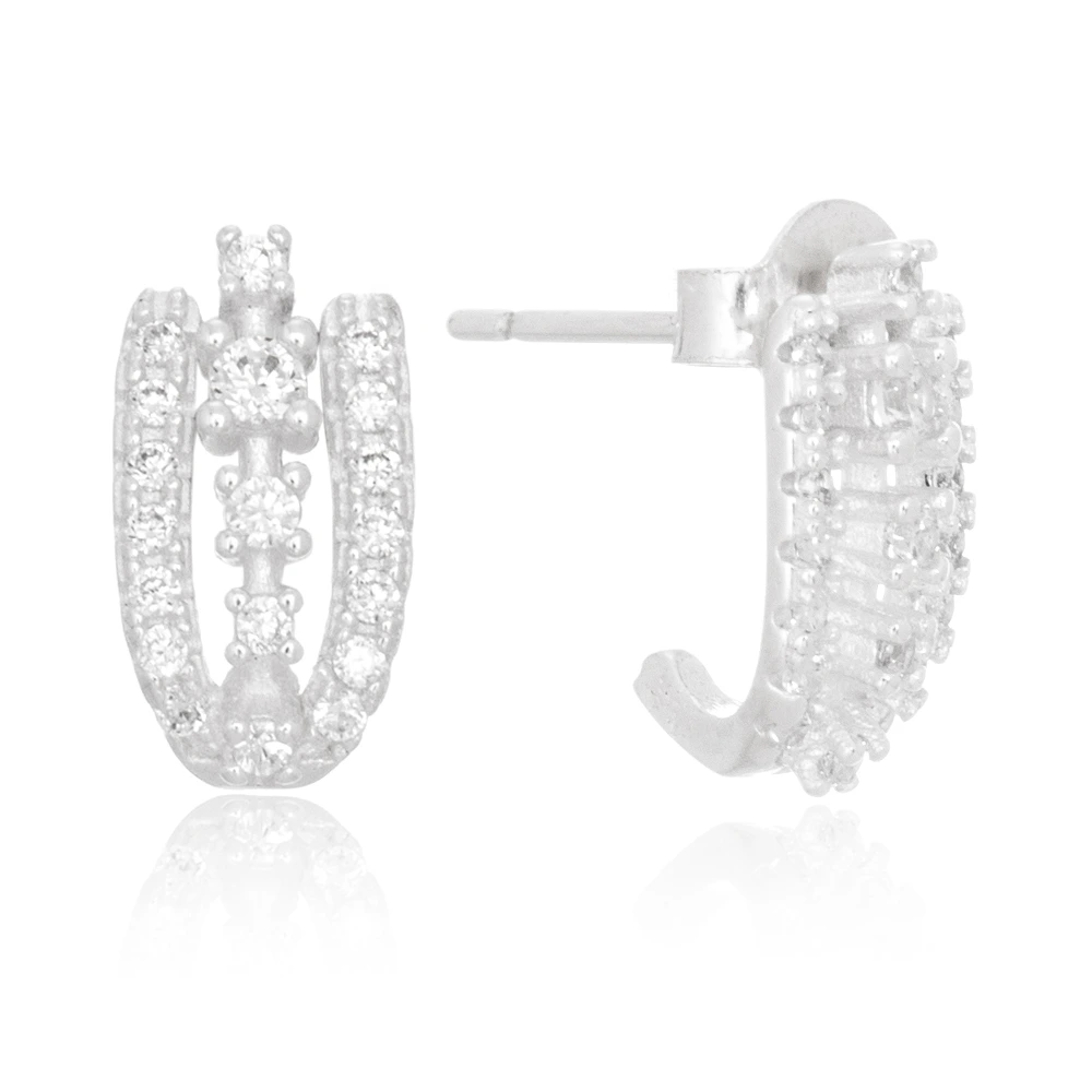 O Brinco de Prata Três Aros Cravejados é a escolha perfeita para quem busca elegância discreta.