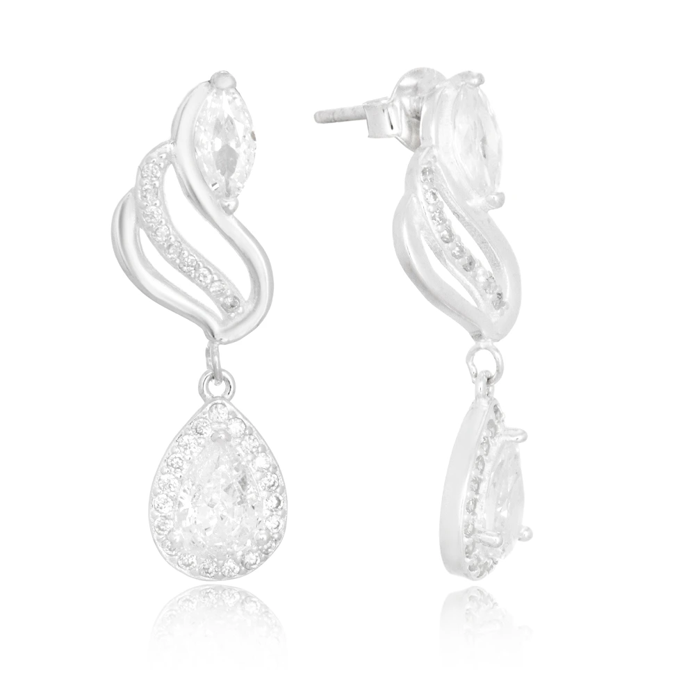 Brinco de prata 925 três pendentes com gota zircônia lateral cravejada