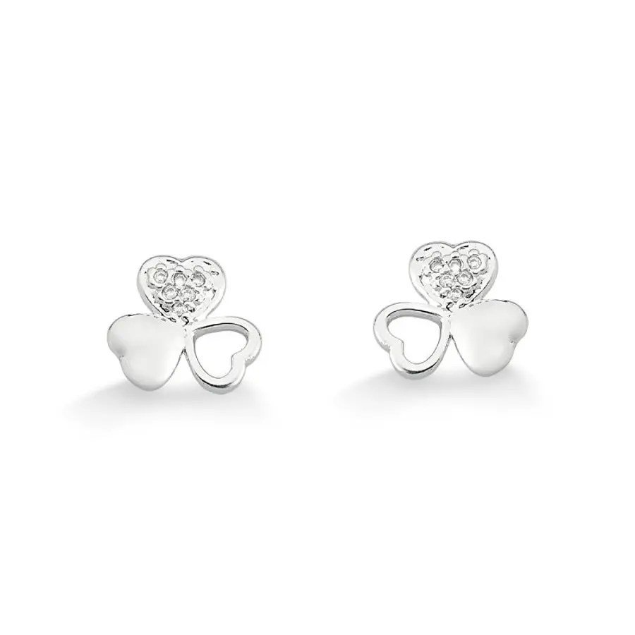 Brinco de prata 925 trevo corações com zircônias