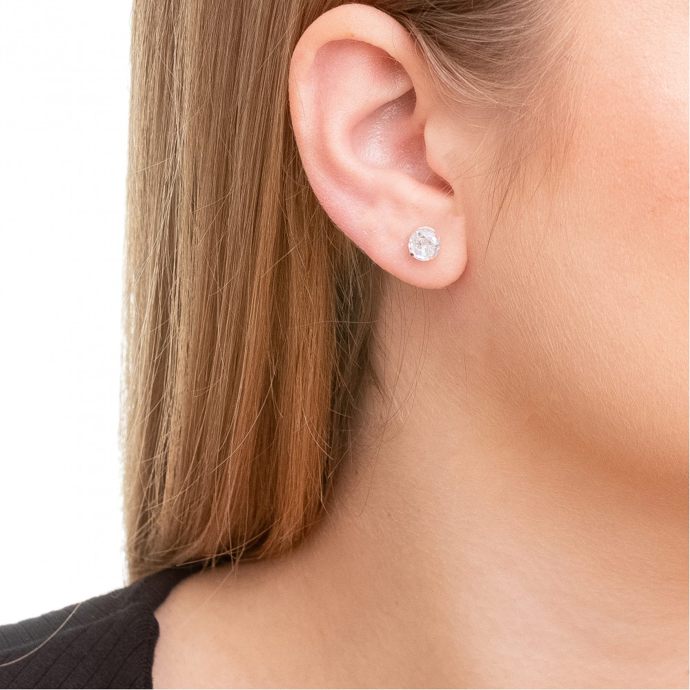 Este brinco conta com um design delicado com uma zircônia redonda cristal e fecho de tarraxa.