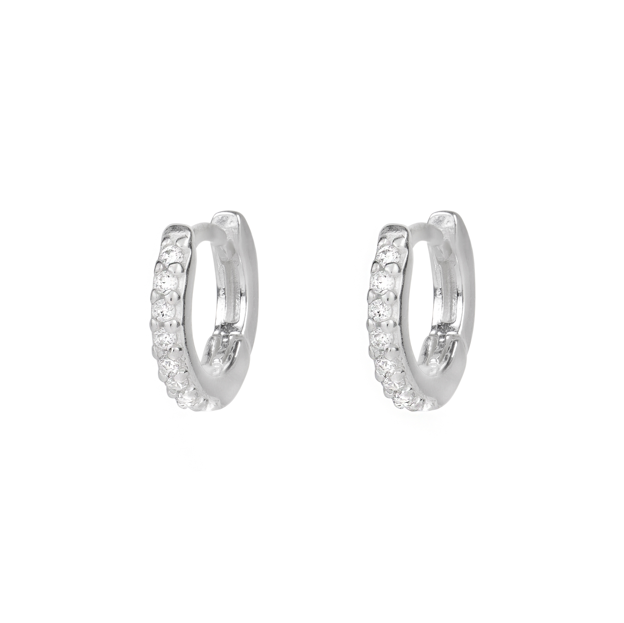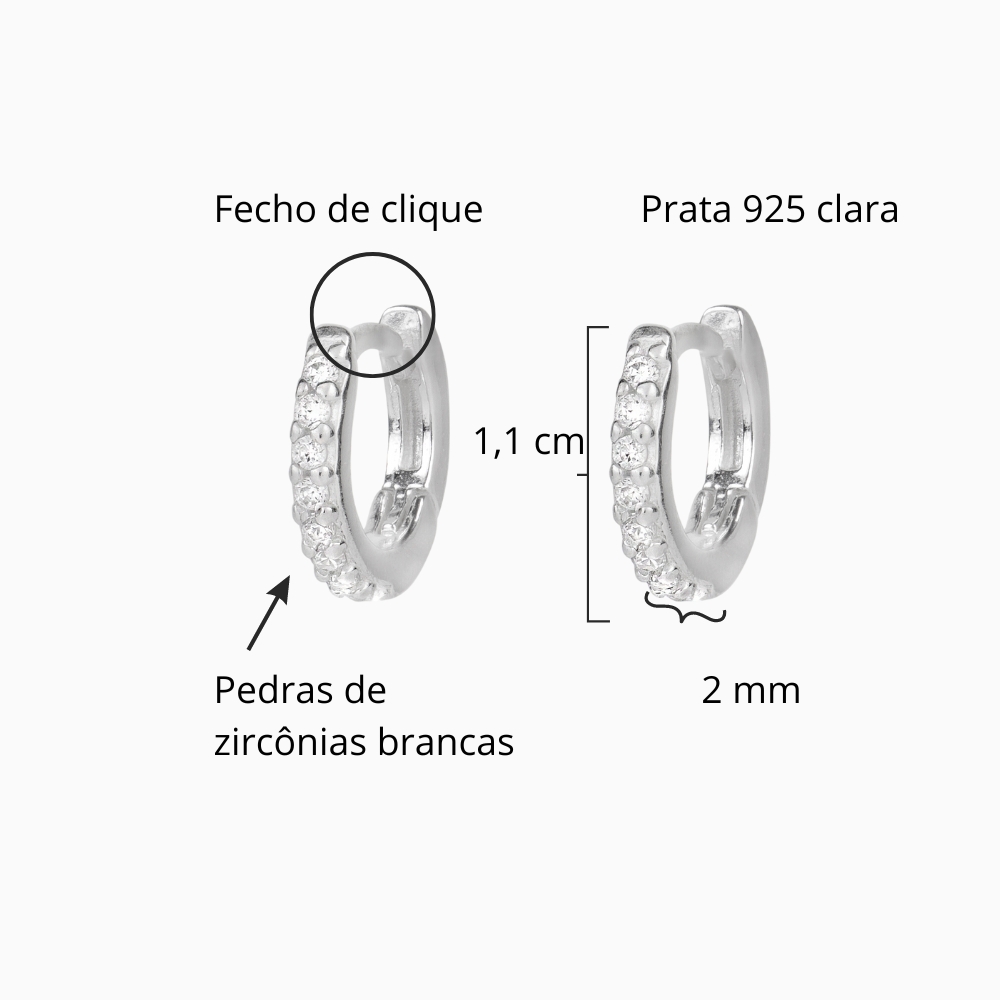 Brinco De Prata 925 Argola Pequena Cravejada Zircônias Cristal