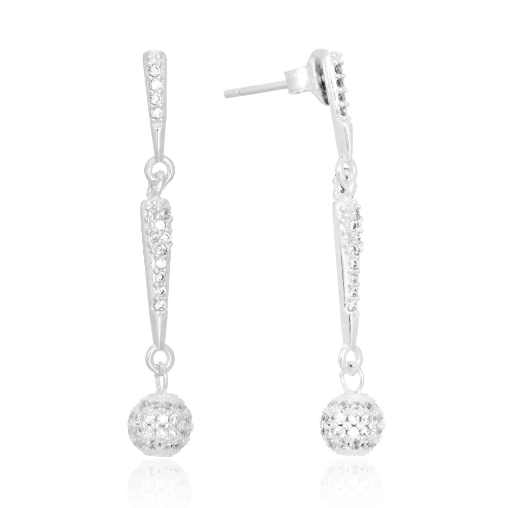 Brinco de prata 925 fio duplo e bolinha cravejada pendurada