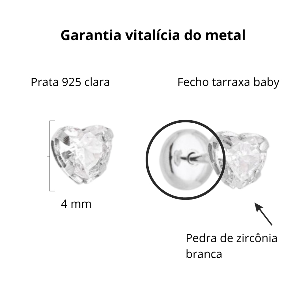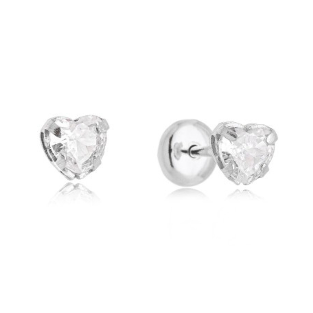 Brinco de prata tarraxa baby zircônia coração cristal