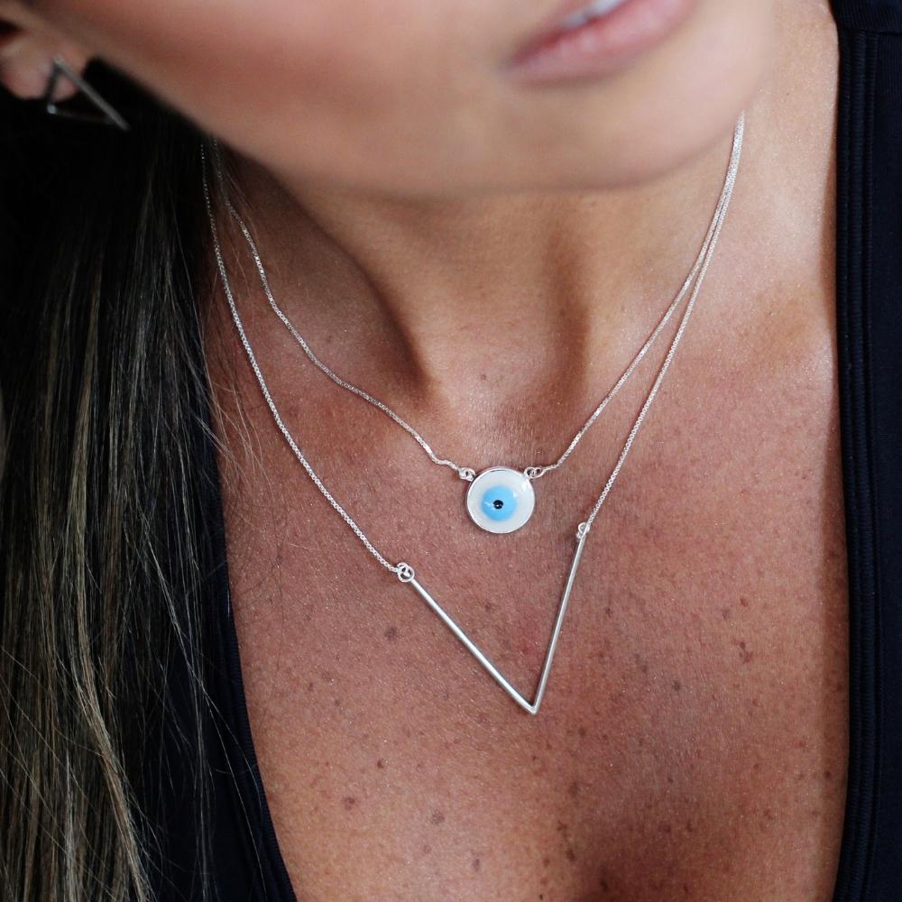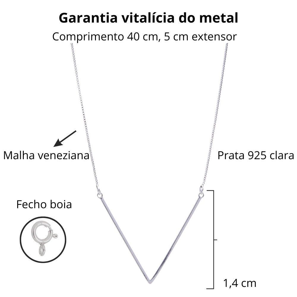 Além do mais, as peças minimalistas estão sempre em alta. Então aposte no colar V geométrico em prata e fique ainda mais linda!
