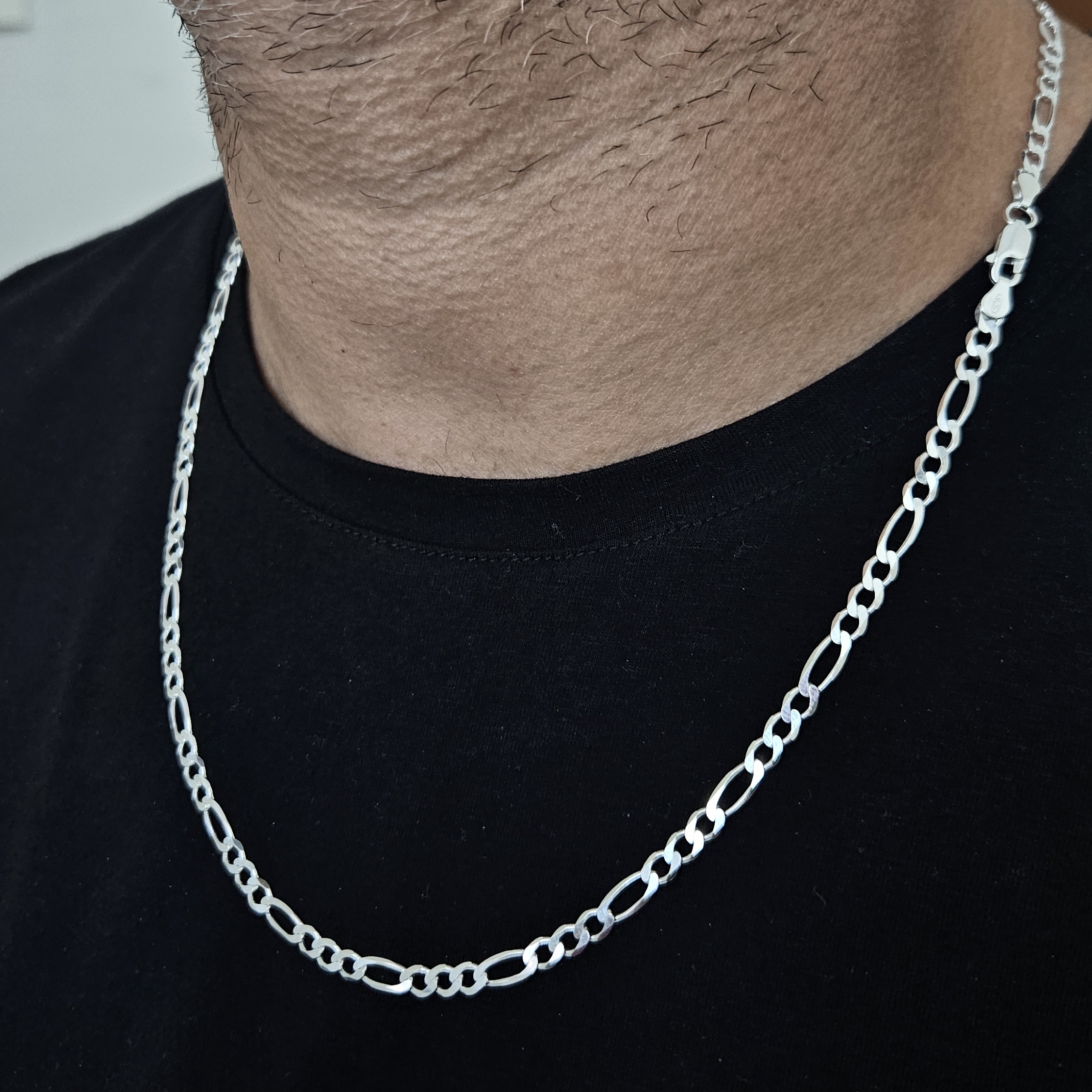 Corrente de prata 925 masculina 3×1 Fígaro 4mm 60cm