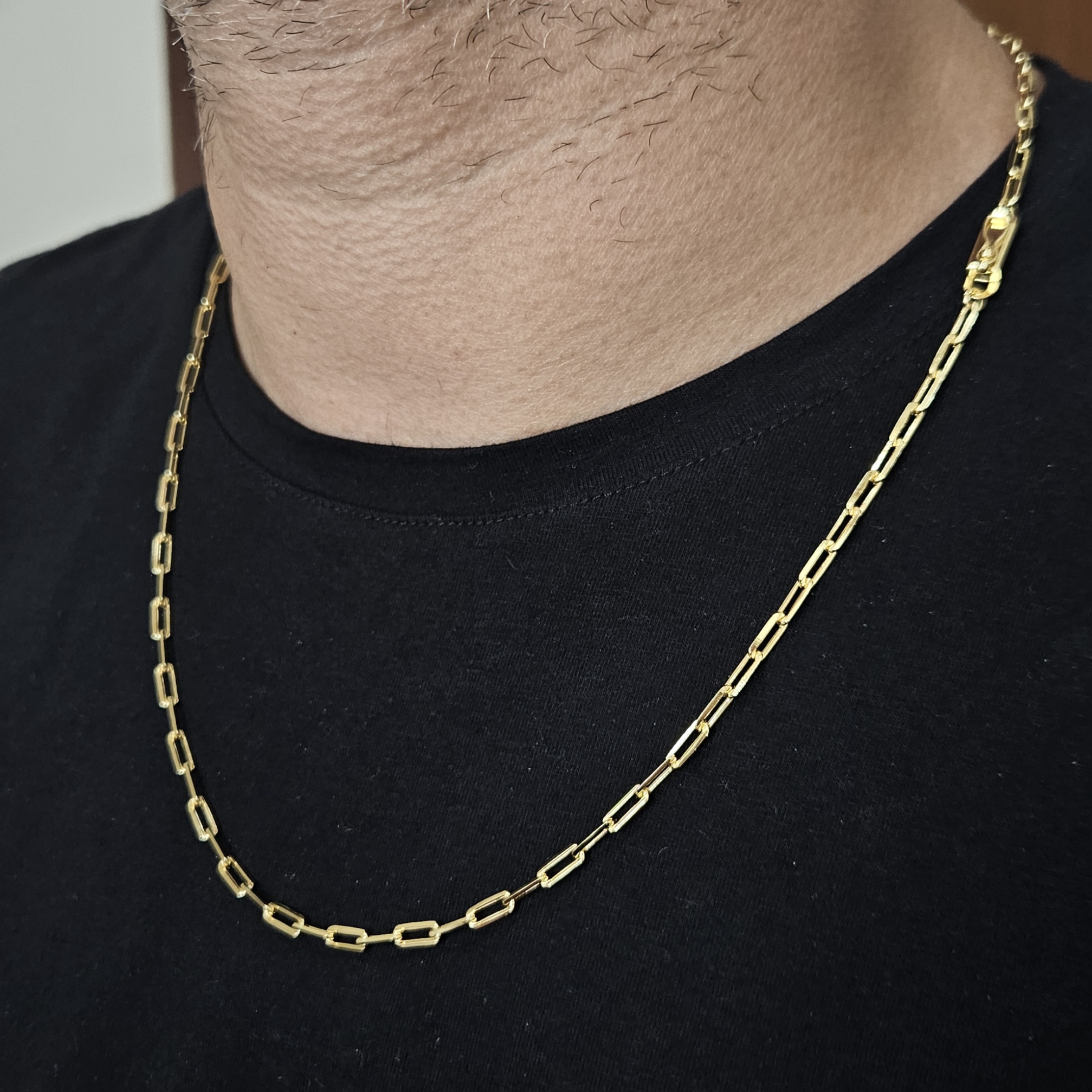 R$ 155,40 5x de R$ 31,08 s/ juros R$ 147,63 no PIXCorrente masculina 1×1 fecho gaveta 4mm banhada a ouro 18K
